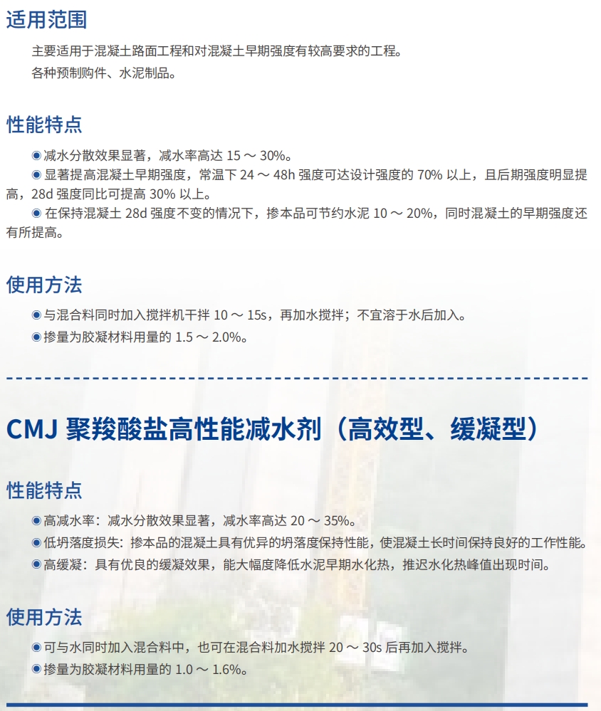 CMJ 聚羧酸盐高性能减水剂(高效型、缓凝型)